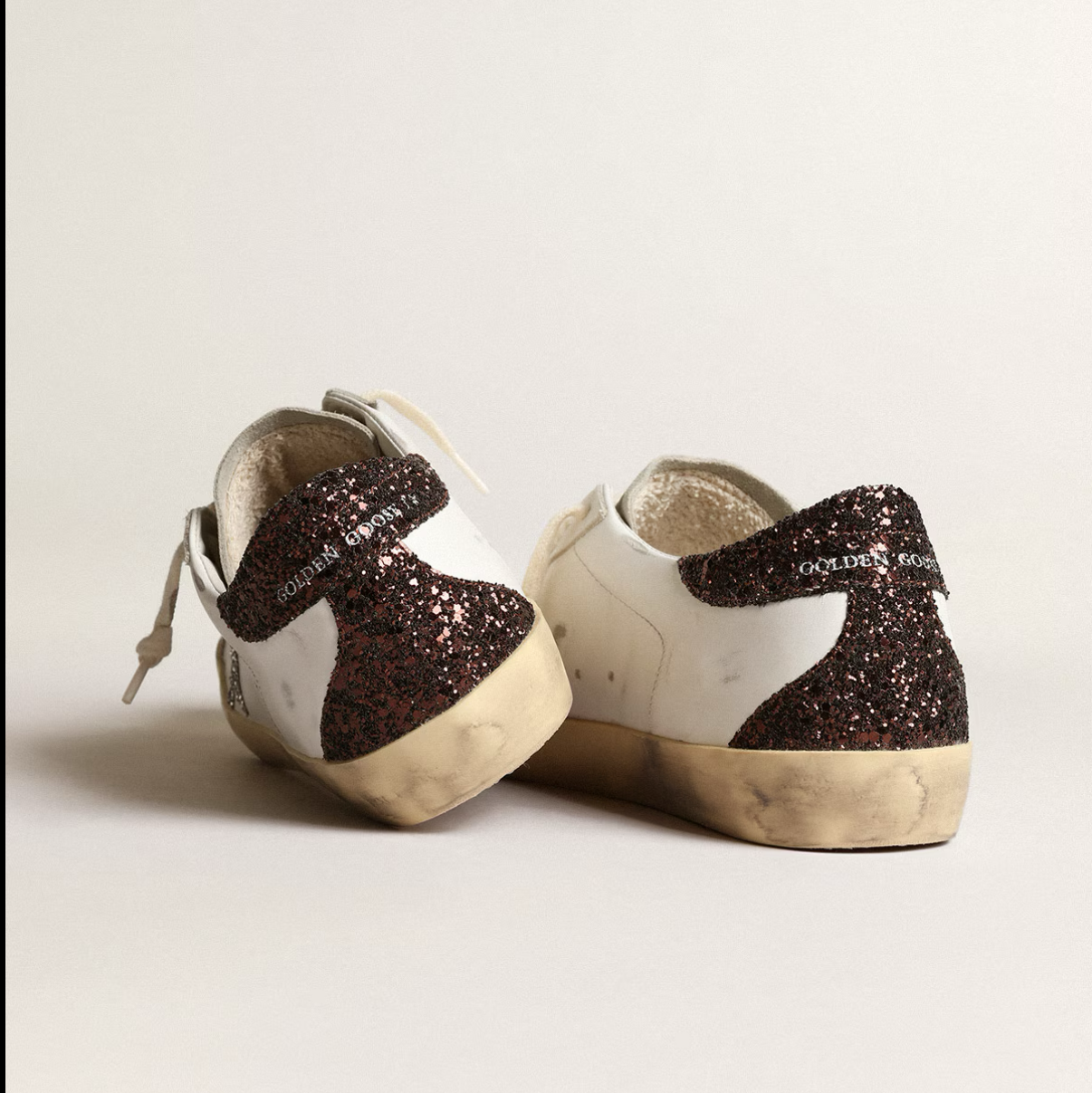 Basket Super-Star Étoile Argentée à Paillettes Marron