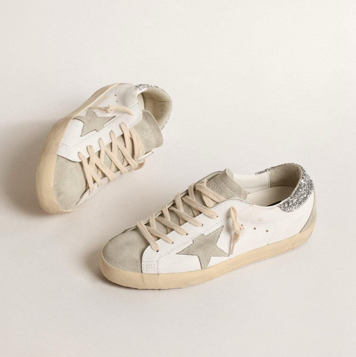 Basket Super-Star Étoile Grise et Contrefort Paillettes Argentées