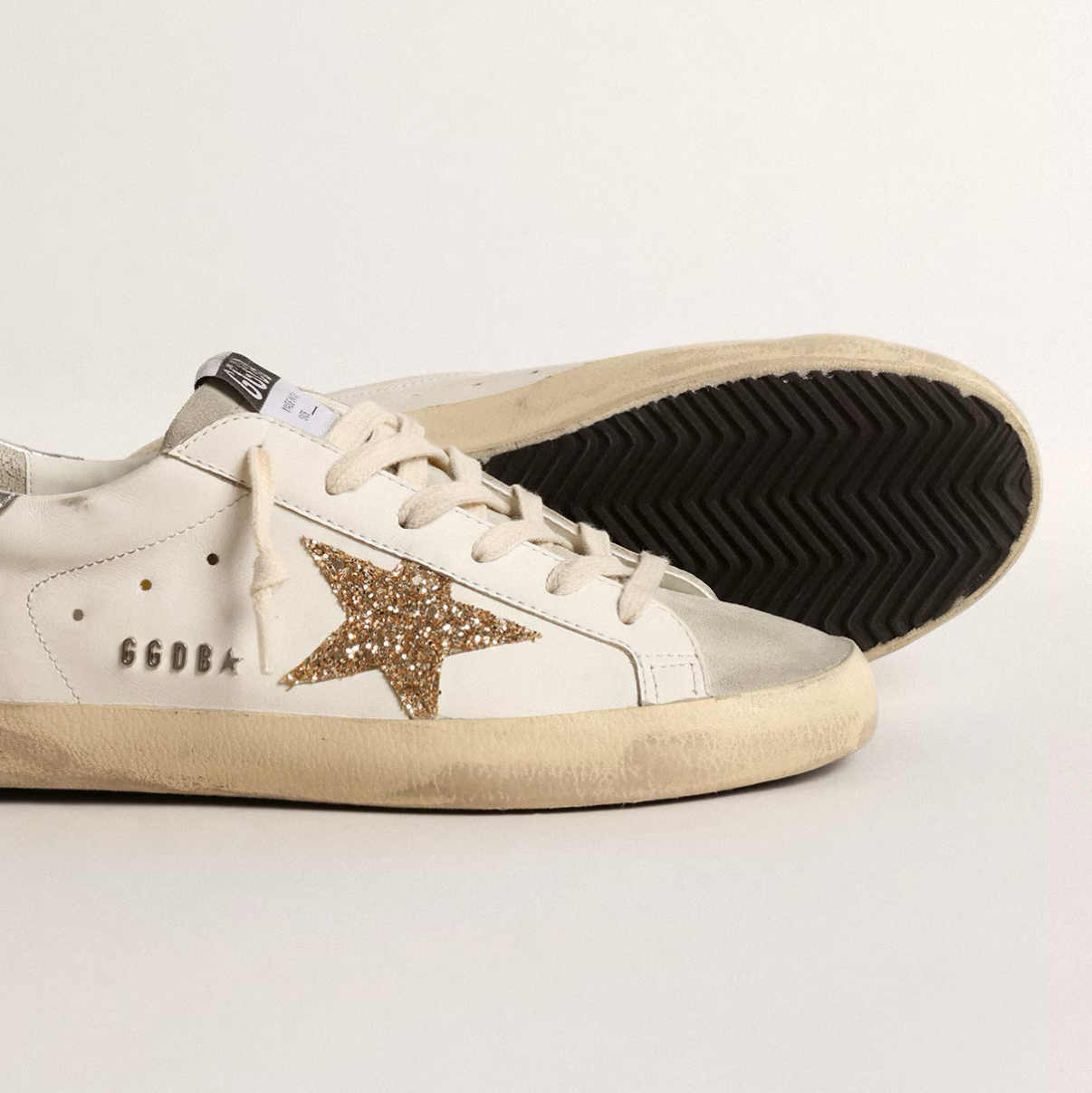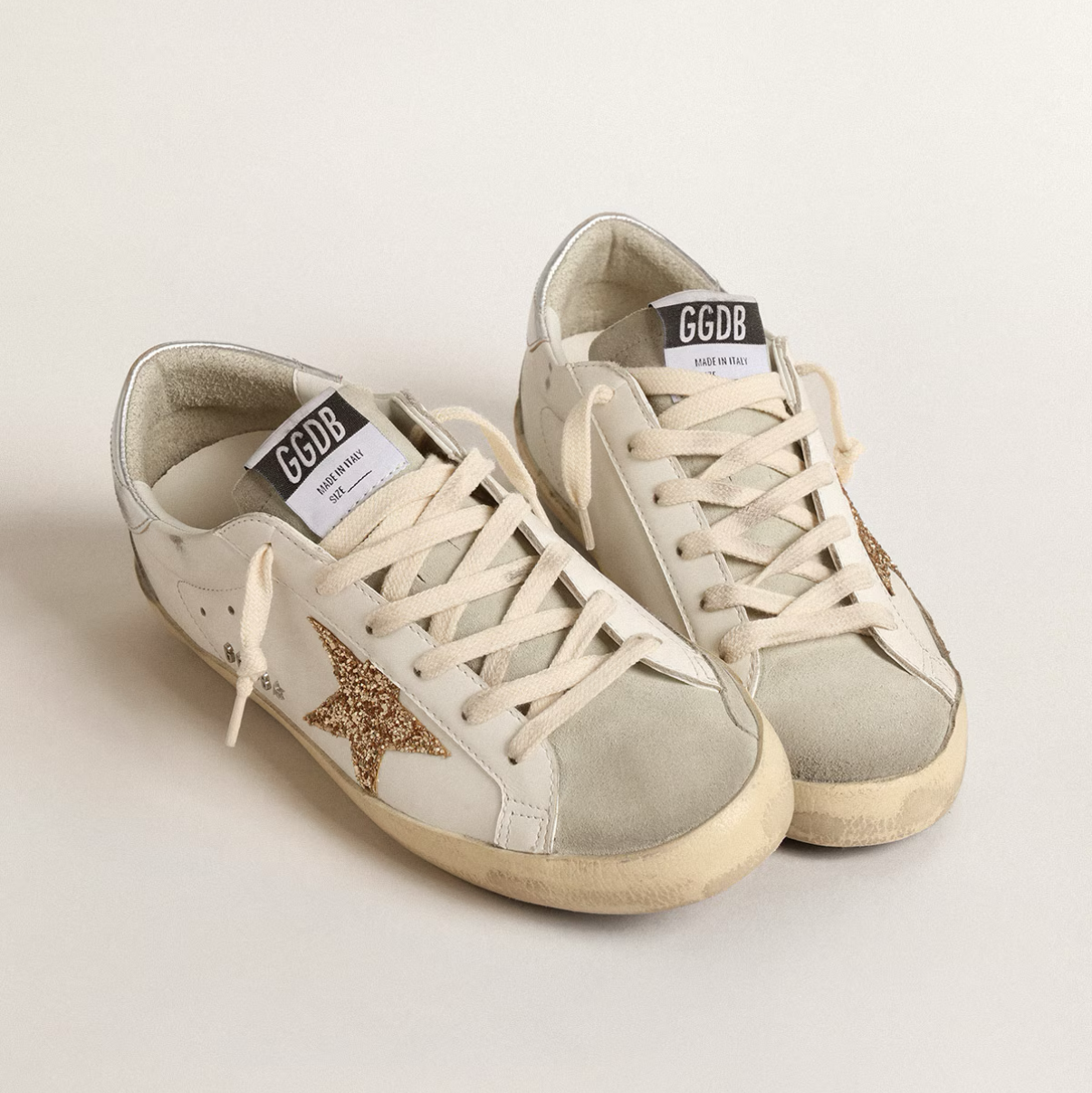 Basket Super-Star Paillettes Dorées en Daim Gris
